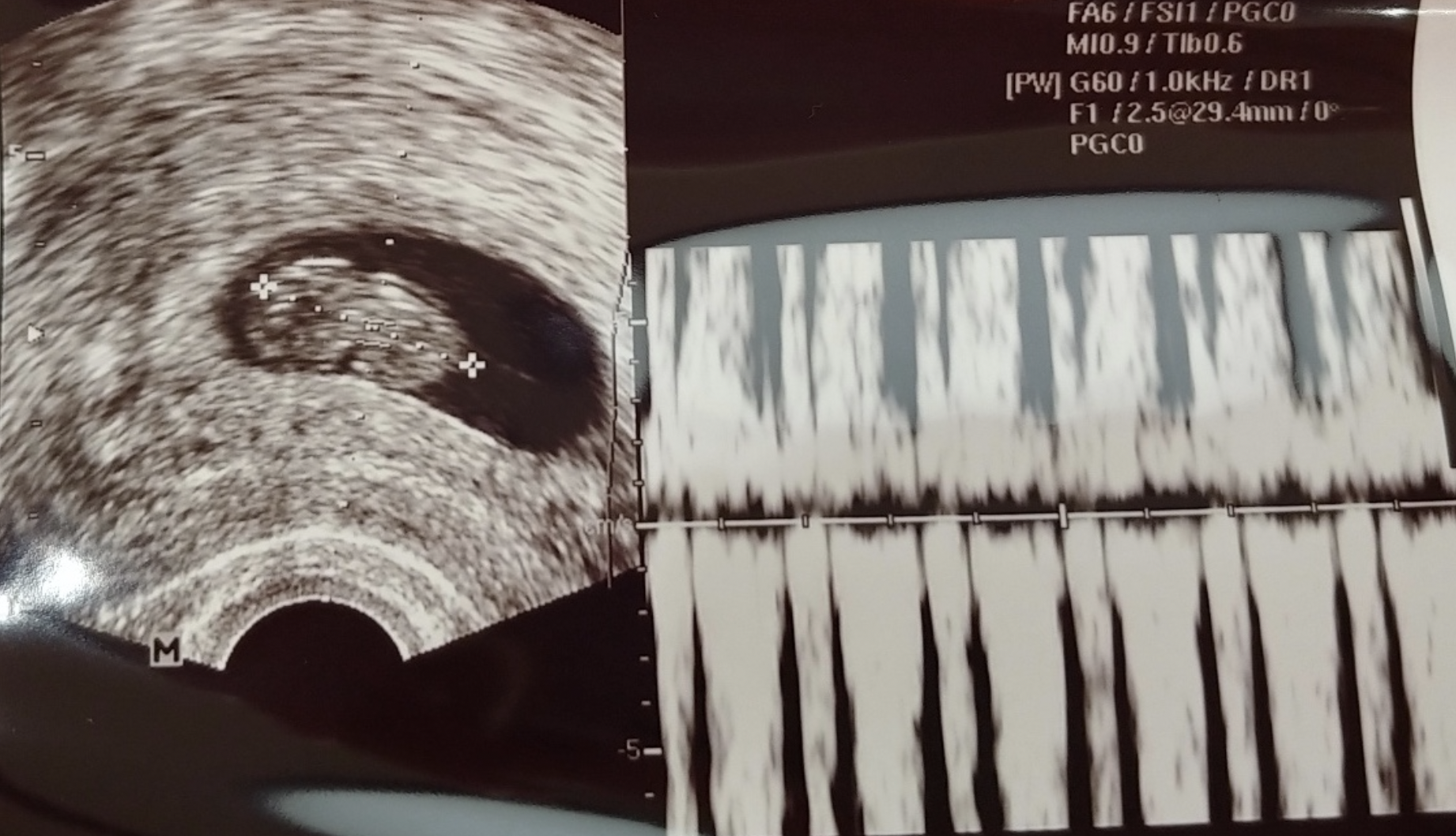 이후의 기억은 정확하지는 않지만, 일주일 쯤 후 다시 피검사를 해서 수치가 많이 올라갔는지 확인했고 결과가 괜찮았다. 그리고 또다시 2~3주쯤 지나 아기집과 난황을 확인했고, 2주쯤 후인 6월 18일에 초음파 진료를 통해 태아도 보고 태아의 심장소리를 들을 수 있었다. 난임 전문병원으로는 이제 그만 오고, 다니기 편한 산부인과를 선택해서 이제 그쪽으로 다니라고 했다.
