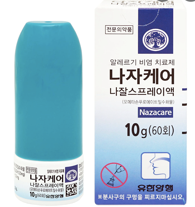 병원에 가면 항히스타민제 외에도 비강스프레이를 처방 받을 수 있습니다. 제가 처방받은 제품은 나자케어 나잘스프레이액 이며, 주 성분은 모메타손푸로에이트일수화물 이라고 합니다. 이 성분은 알러지 비염의 완화 효과가 있다고 합니다. 다만, 비강 스프레이는 알러지약인 항히스타민제 처럼 그 효과가 즉시 나타나지는 않으며, 1주일 이상 꾸준히 했을 때 효과가 있다고 합니다. 개인적인 경험으로도 즉시 뭔가 효과가 나타나는것 같지는 않았습니다. 다만, 환절기 등 비염 증상이 심할때 꾸준히 해 주면 장기적으로는 효과가 있는것 같습니다.